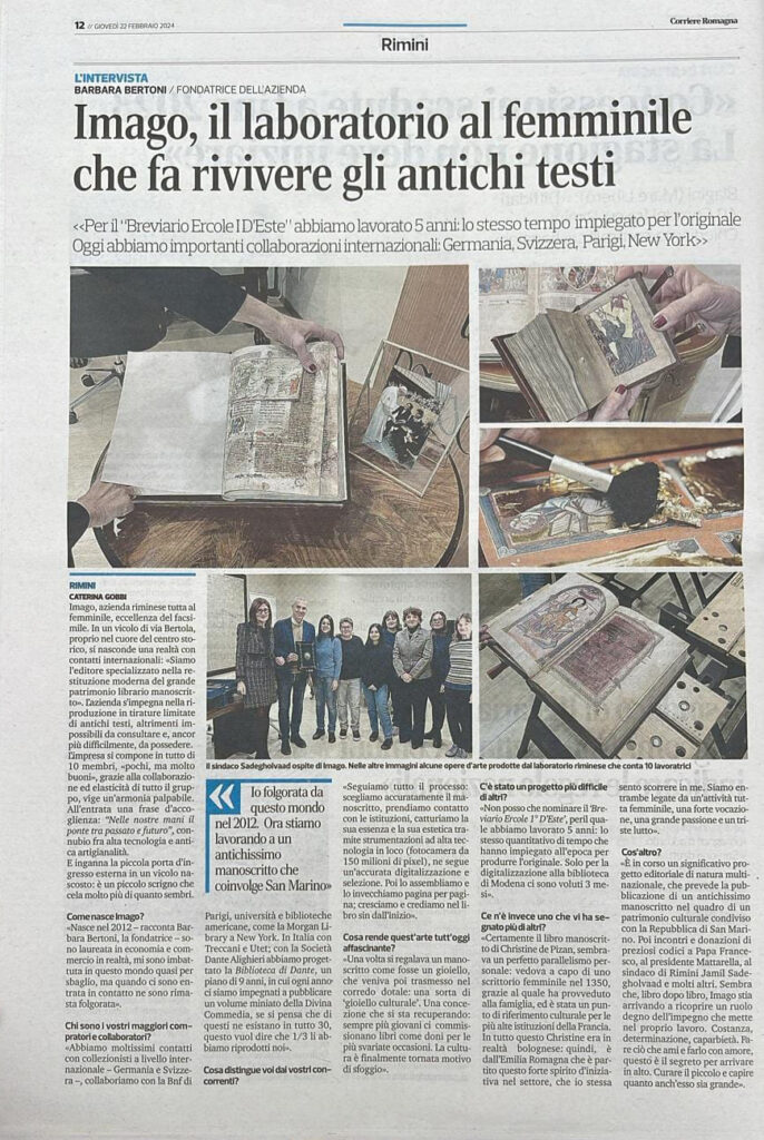 Giovedì 22 febbraio 2024 la casa editrice Imago è stata intervistata per il Corriere di Romagna.